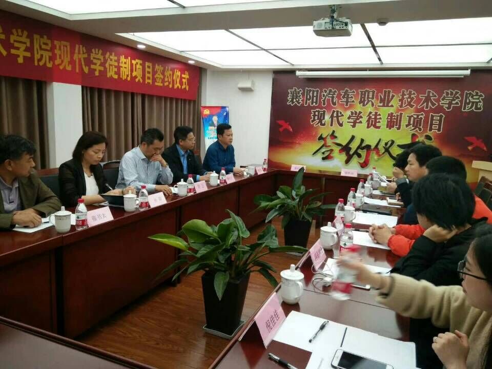 签约仪式上,许书记向大家深入介绍了学院和襄阳,并表示,现代学徒制作为现在国家大力推进的职业教育培养模式,能解决教学与实践脱节的问题、学生实践能力缺失、就业范围局限的问题。校企联合、校企双师培养、工学交替培养人才,满足企业高素质人才需求、对高技能人才的渴望,也将提升学校的核心竞争力,使学生的素质全面提高。双方只要本着共同发展、共同培养人才,从有利于企业、有利于学生的发展、有利于国家人才的培养这些角度,精心打造和呵护,现代学徒制这种人才培养方式一定会获得圆满成功。