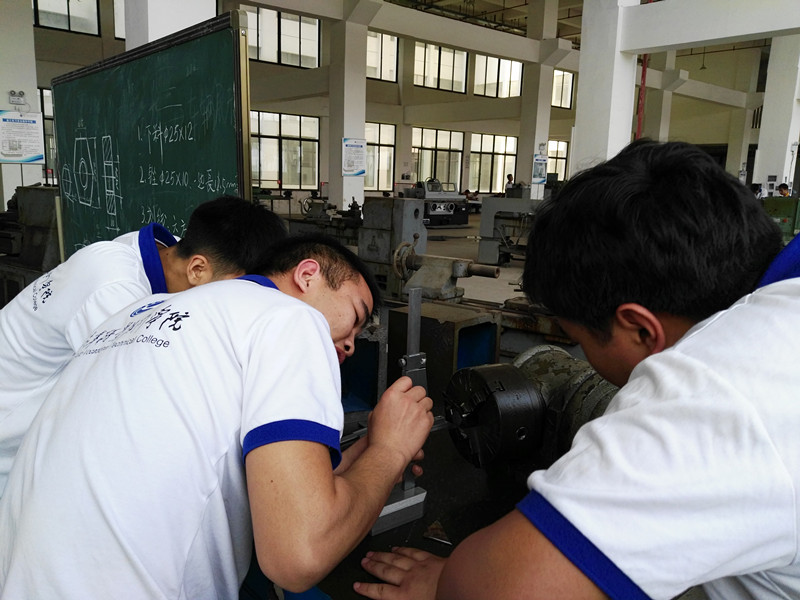 5月16号一大早,1701班的同学们精神抖擞地着工装准时进入实训中心,听从实训老师的分组安排。本周实习共分为四组:焊工组、车工组、铣工组、钳工组,轮流实训,每天一换,最后一天强化训练。由于实操成绩在技能高考中分值高达340分,学生动手积极性比较高,班主任和指导老师在检查过程中有不少同学主动拿着自己做的工件给老师看。