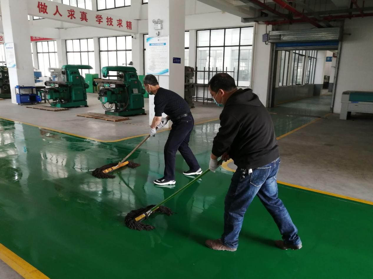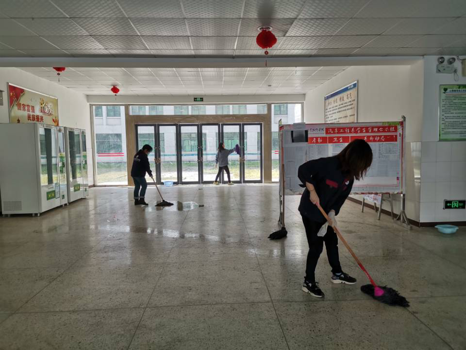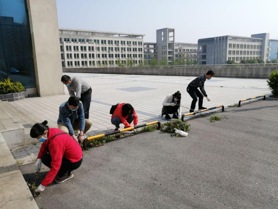 其中,教学楼卫生区由孙莉院长负责牵头,1号教学楼由我院教师包干负责,2号教学楼由模具学院全体教师负责;实训楼卫生区,由刘红梅老师负责牵头;绿化区,由刘毅老师负责牵头,根据区域划分,进行地面清理。工作标准按照创文标准进行。特殊时期,要求所有教师必须佩戴口罩,不聚集聊天。