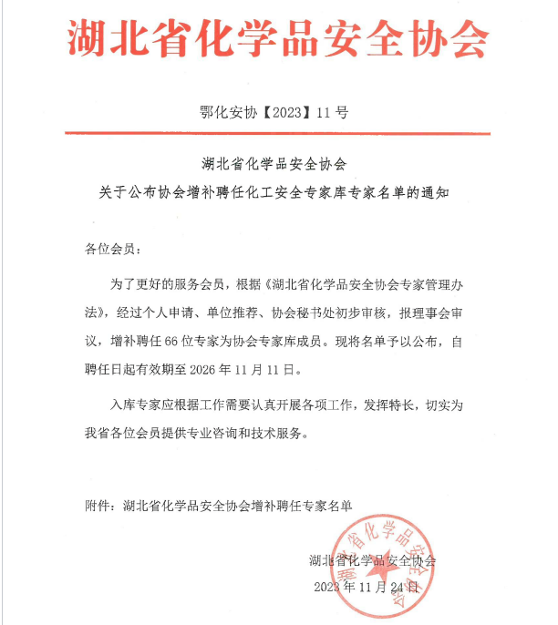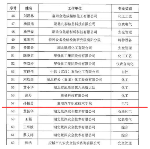 【智院夸夸】襄汽教师入选湖北省化学安全专家库