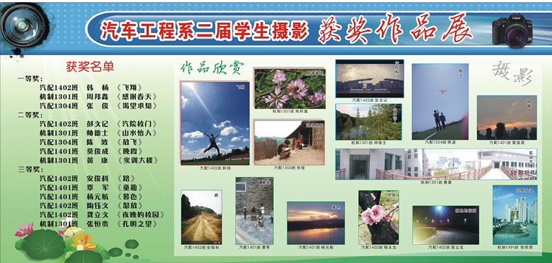 2015年6月6日上午,汽车工程系的第二届摄影比赛评选结果公布,13、14级学生的优秀作品使得不少同学和老师驻足观看、细细品味。