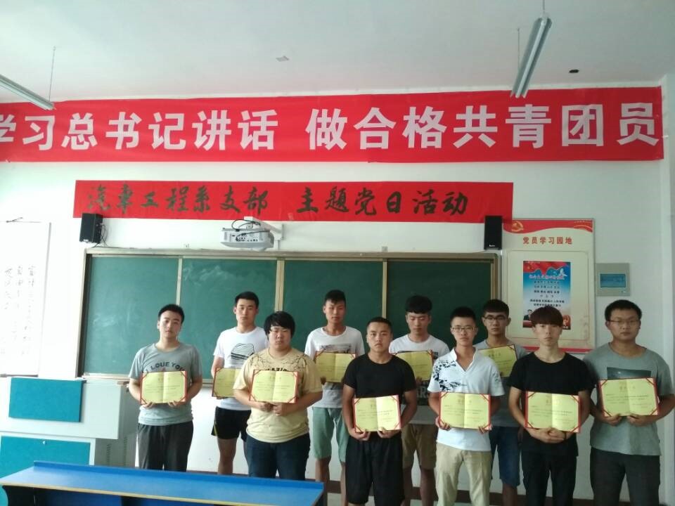 团课接近尾声的时候,汽车工程系分团委组织学生开展学习讨论“作为当代大学生,结合自身实际,如何做一个合格共青团员”,大家都争先恐后的积极发言,侃侃而谈,感觉收获颇多;组织全体团课学员观看了“纪抗战胜利七十周年的阅兵仪式”,同学们激情澎湃,感叹祖国在几代领导人的带领下,历经几十年的风风雨雨才取得了今天这样的辉煌成就,更增强了同学们身体力行、以实际行动去实现中国梦的决心。活动进行到最后,对此次参加团课培训的10名优秀学员进行了表彰,给此次“一学一做”团课培训活动划上了一个圆满的句号。(系团委宣传部)