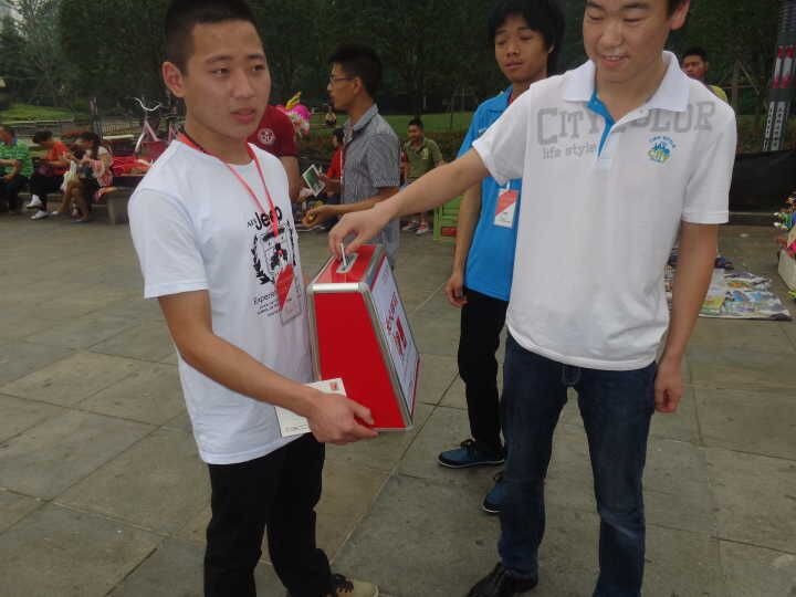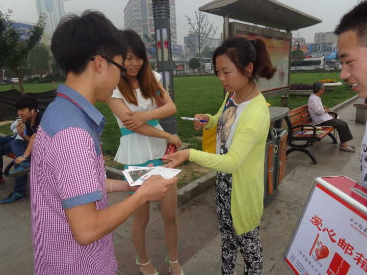 活动期间,同学们都热情似火的抱着募捐箱去为山区的小孩子集结祝福送给他们,尽管遇到很多的冷眼相对,但同学们热情不减,顶着烈日没有一丝的疲倦。
