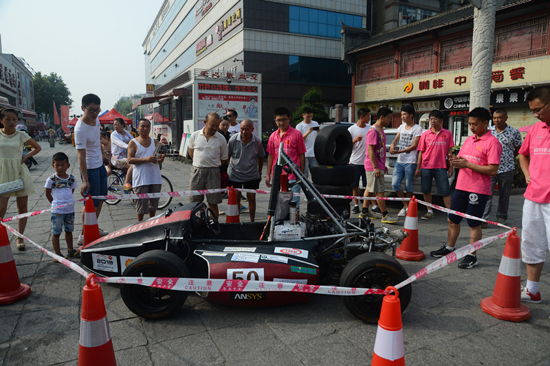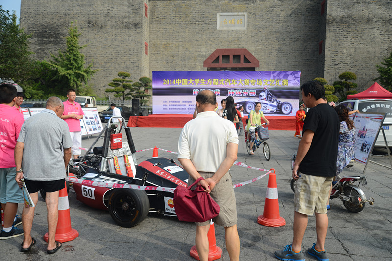 2014年8月1日上午,汽车工程系学生自行组织前往襄阳古城昭明台,宣传与展示我校大学生自主制造的赛车。