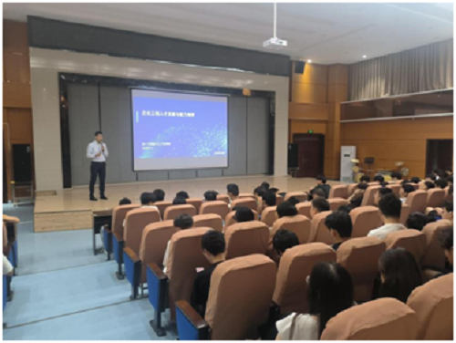 西门子(中国)有限公司创新与人才发展部教育合作高级经理孙宏涛,给同学们做“企业工程人才发展与能力培养”专题报告。宣讲分为两个环节,首先孙经理从智能制造的目标与背景、产业与行业趋势、企业对人才的需求、知识和技能、自我修养与提升几个方面给大家做了详细阐述,用自己的经验和案例告诉同学们,企业是如何选拔人才以及个人如何发展。第二个环节,孙经理与同学们进行了充分的交流互动,学生进一步了解了西门子智能制造工程认证的重要程度,起到了良好的宣传效果,调动了大家积极参加培训认证的积极性。