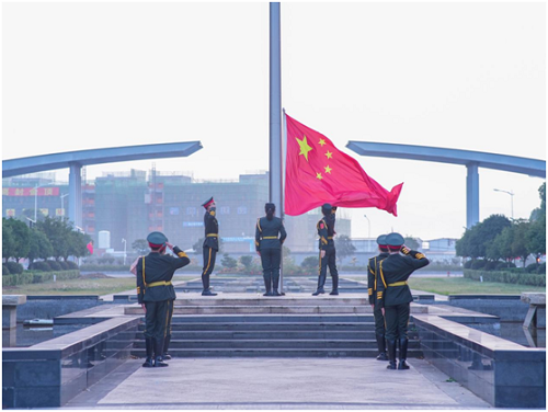 仪式伊始,国旗护卫队的队员们身着整齐划一的制服,眼神坚定庄严,出旗步伐铿锵有力。当熟悉的《义勇军进行曲》旋律响起,全体同学肃立,行注目礼,齐声高唱国歌,歌声嘹亮激昂,响彻清晨的校园。国旗在国歌声中冉冉升起,伴着晨光,随风飘扬。