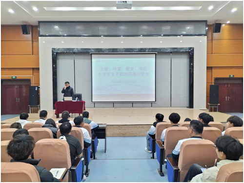 为加强学生干部的过硬品格与使命意识,11月24日晚,我院邀请学校办公室副主任王飞在学术报告厅作题为“转变、蜕变、淬变——学生干部担当与使命”专题讲座,全体学生干部参加。