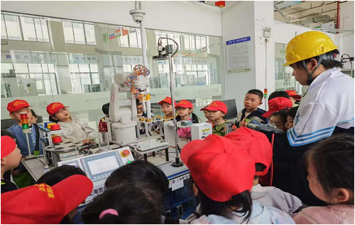 在智能制造学院科普基地,小记者们有序参观机创 “吧”、灯塔工厂、飞机模拟器飞行展区、3D工坊等区域。先进的设备激发了小记者们的好奇心,再加上志愿者们的详细讲解,更是打开了他们对科技领域向往的大门。