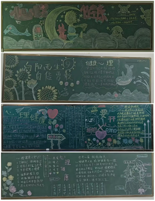 本次黑板报创意展得到学院的高度重视与大力支持,各班级积极响应,围绕 “压力管理”“情绪调节”“人际和谐”“自我认知”“生命教育” 等核心心理健康主题展开创作。在设计过程中,同学们充分发挥创造力与团队协作精神,将专业知识与艺术表达相结合,创作出一幅幅设计新颖、色彩明快、图文并茂的优秀作品。有的班级以温暖治愈的漫画形式,生动展现人际交往中的善意与包容;有的则运用清晰明了的知识小贴士,科普实用的心理调适技巧;更有班级通过励志格言,激发同学们拥抱阳光、积极向上的内在动力。