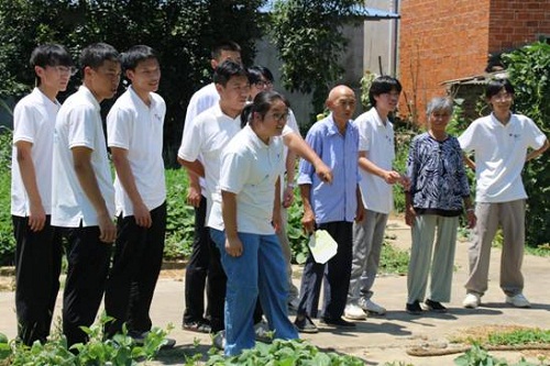 实践团成员满怀敬意与热忱,手提团队成员亲手创作的手工作品踏入老党员家中。成员们围坐在老党员身旁,亲切地唠起家常,随后将话题引入此次墙绘创作,诚恳地请教老党员的看法。为了让成员们更直观地感受乡村元素,这位老党员主动带领团队成员来到菜地里,一股对自然的敬畏与对农耕文化的亲切感油然而生。在与老党员的交流中,不仅感受到老党员对乡村建设的拳拳之心,更收获了许多实用且新颖的思路,告别的时候,团队队长老党员深情拥抱告别,这一拥抱饱含着感谢与敬意,也为后续墙绘创作的顺利推进筑牢了根基。