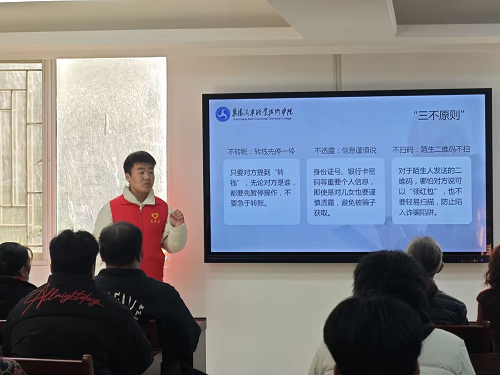 为切实增强社区老年人防范诈骗的意识和能力,筑牢养老诈骗“防护网”,近日,襄阳汽车职业技术学院汽车智能制造学院“智行先锋”志愿服务队走进樊城区清河口街道美满社区,开展“守护银龄·智防诈骗”主题宣传活动。志愿者们通过形式生动、内容实用的防诈骗知识讲解与互动,为社区老人送去了一份贴心的“反诈锦囊”。