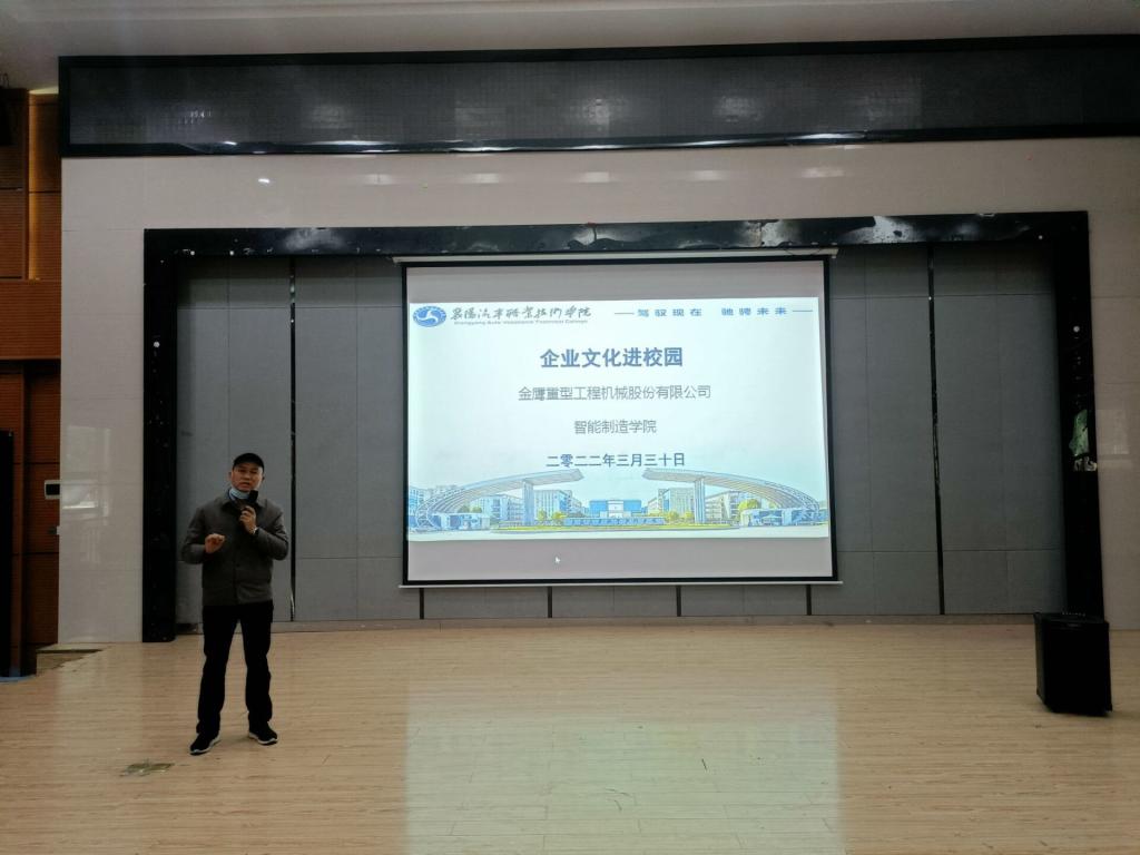 为加强校企合作,2022年3月30日智能制造学院邀请金鹰重型工程机械股份有限公司人力资源部部长为我院师生做金鹰重工进校院专题讲座。出席本次活动的有金鹰重工人力资源部部长刘进建、司红斌、智能制造学院副院长马春亮及相关师生。