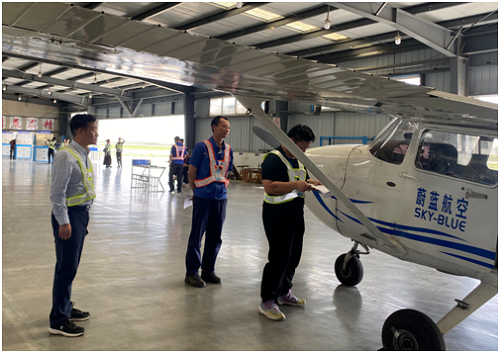 4月24日,湖北蔚蓝通用航空科技股份有限公司举办了蔚蓝杯维修技能大赛专业比赛,我校党委委员、副校长包科杰一行前往观看比赛实况,为我校学子比赛加油打气。