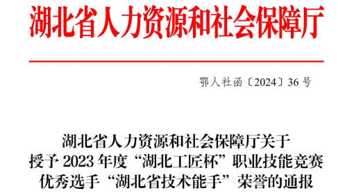 3月18日,湖北省人力资源和社会保障厅发布《关于授予2023 年度“湖北工匠杯”职业技能竞赛优秀选手“湖北省技术能手”荣誉的通报》。智能制造学院工业机器人2201班学生张国豪、李秉杰榜上有名。