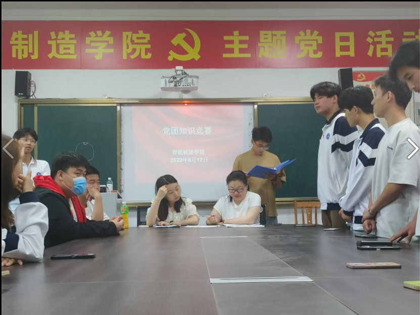 为进一步增加智能制造学院团员积极向党组织靠拢的积极性,端正同学们学习党的基础知识及理论的态度,也为配合学校职教周活动。2023年5月17号上午10点智能制造学院学生会在1-212教室举行党团知识竞赛,参与本次活动的有马克思主义学院孙玉曼老师,智能制造辅导员徐杨老师,35名入党积极分子以及文辩社全体成员。