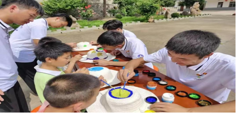 一顶顶五彩斑斓的手绘帽子,是在小朋友们在轻松、快乐中的游戏中制作出来的。