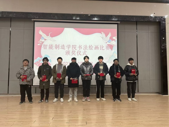经线上线下综合评审,书法比赛中机电2310班陈小青斩获一等奖,无人机2201班杨逸凡、电梯2302班许玉朝荣获二等奖,电梯2302班孙子龙、机电2311班刘宏政、机电2311班刘建兴荣获三等奖。绘画比赛中模具2204班黄金龙斩获一等奖,电梯2302班伍慧慧、马俊诚荣获二等奖,无人机2301班彭宇豪、机电2302班卢桂枝、模具2301班黄健荣获三等奖。2023年12月21日,智能制造学院书法绘画比赛在一楼学术报告厅进行颁奖仪式。