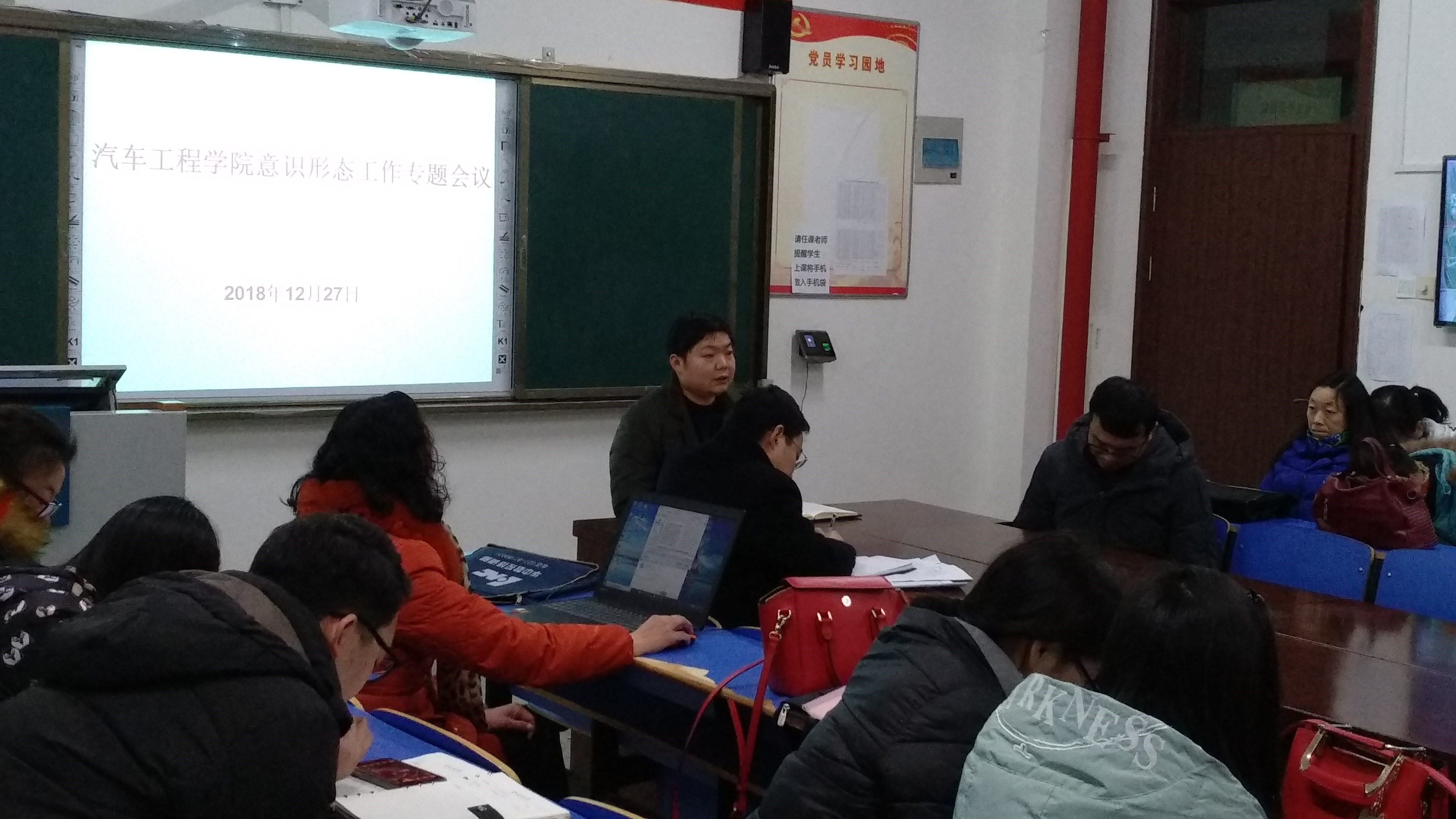 (通信员:张向东 黄闪闪)2018年12月27日下午,汽车工程学院召开全院教职工大会,刘甫勇书记传达了学校2018年12月26日召开的《襄阳汽车职业技术学院意识形态工作专题会议》精神,强调了学校党委书记许云的重要指示。