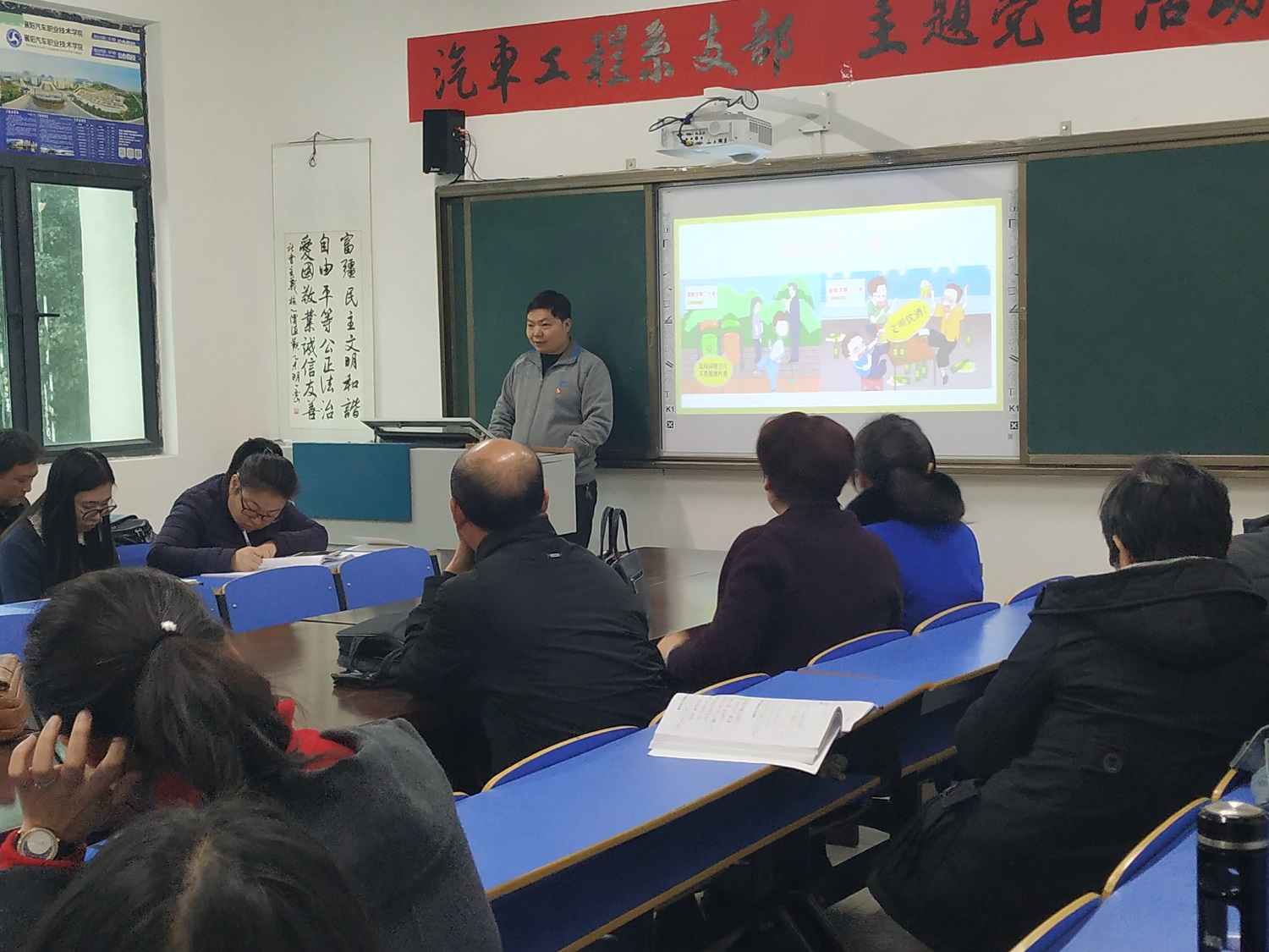 汽车工程系全体教职工在1-212召开以“文明城市,从我做起”为主题的会议。刘甫勇书记首先对文明城市创建进行介绍,然后又介绍了襄阳市文明城市创建的举措,最后指出文明校园创建存在的问题。