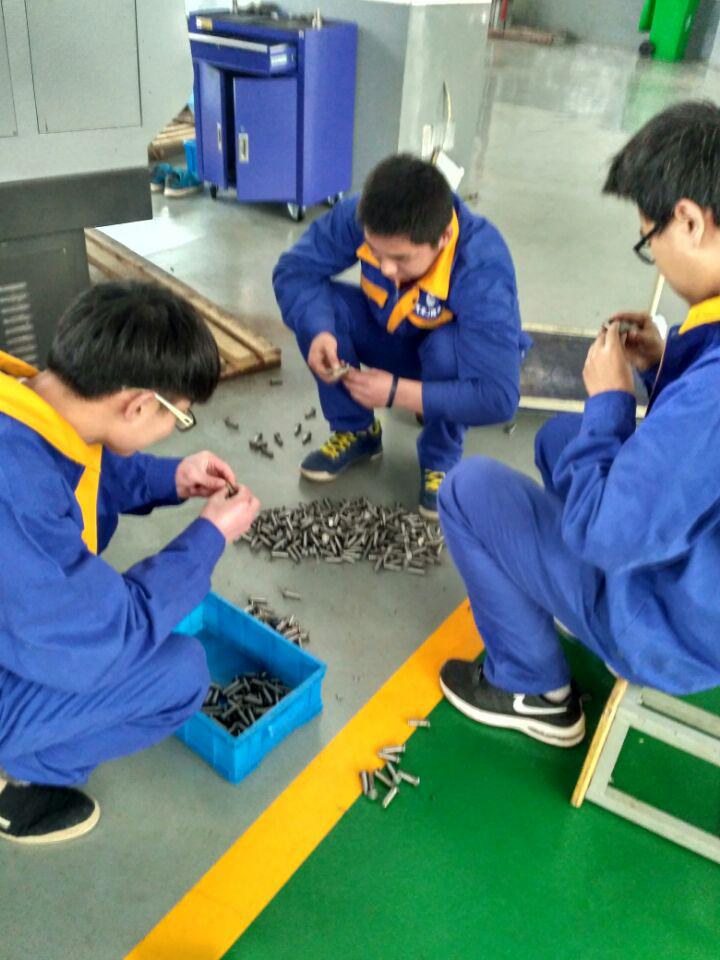 3月10日首批自已申请、经辅助导员批准的18名同学组成的“产教融合、工学结合”试点班成立,进入数控实训中心学习。一名专业教师和5位企业技术工人师傅共同指导,每位师傅分别带5-6名学生,定期轮换工种,每天实行8小时工作制,实行企业生产管理制度。