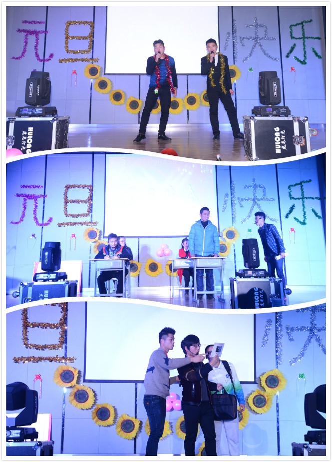 晚会于7点正式拉开帷幕,首先由程院长代表学院登台致开幕词,带着程院长对学院的祝福和对同学们的寄语,元旦晚会正式精彩上演。由汽配15级的3名同学带来的开场歌曲《爱》以靓丽的服饰、动人的歌声、激情的表演瞬间嗨翻全场。1502班同学改编的《修理工之歌》为观众展现了丰富多彩的大学生活;小品《寻找神经病》、《我的大学》、《上课》以诙谐幽默的语言、滑稽的表演方式以及夸张的肢体动作引得现场的观众掌声不断、笑声连连,使得全场气氛再度升温。街舞《Work show crew》、吉他弹唱《我是一只小小鸟》、以及拉丁舞《狂舞时代》不但展现了我院学生在学习之余有着广泛的兴趣爱好,更充分体现了我院大学生的靓丽风采。最受关注的无疑是由孙旭阳老师演唱的歌曲《有形的翅膀》,孙老师优美的歌声把现场的氛围推向了巅峰!最后,晚会在汽配1501班同学带来的手语《感恩的心》中落下帷幕!