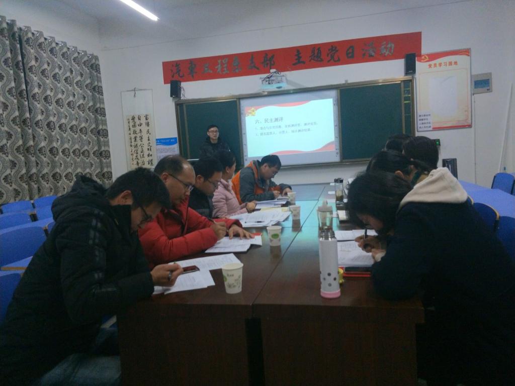 会议在叶洪飞同志主持下,于12月11日下午举行,学院主题教育指导小组成员、学院院长耿保荃到会指导,汽车工程学院院长孙莉、汽车工程学院党总支副书记王俊雄参加了会议,汽车工程学院副院长左小勇以普通党员身份参加党支部组织生活会。