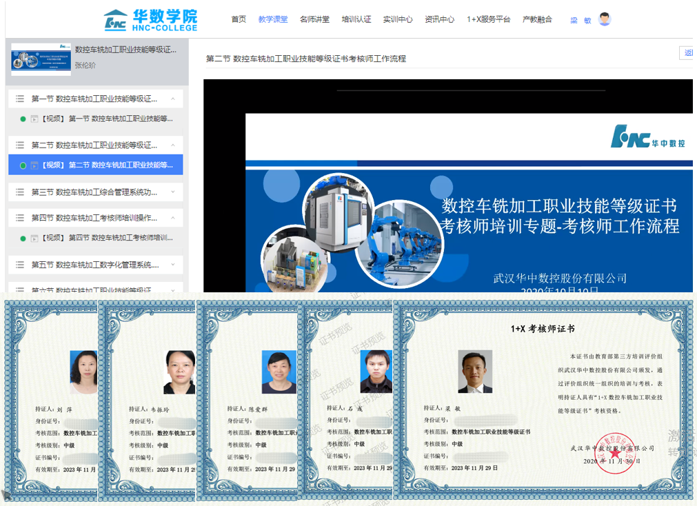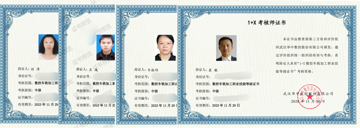 11月底,机制专业负责人梁敏主任牵头组织刘萍、韦振玲、陈爱群、石彧等专业教师参加1+X数控车铣考核师培训,均获得“1+X数控车铣加工职业技能等级证书”考核师证书。目前机制专业数控教学团队已经同时具备了“1+X数控车铣职业技能等级证书(中级)”培训和考核资格。