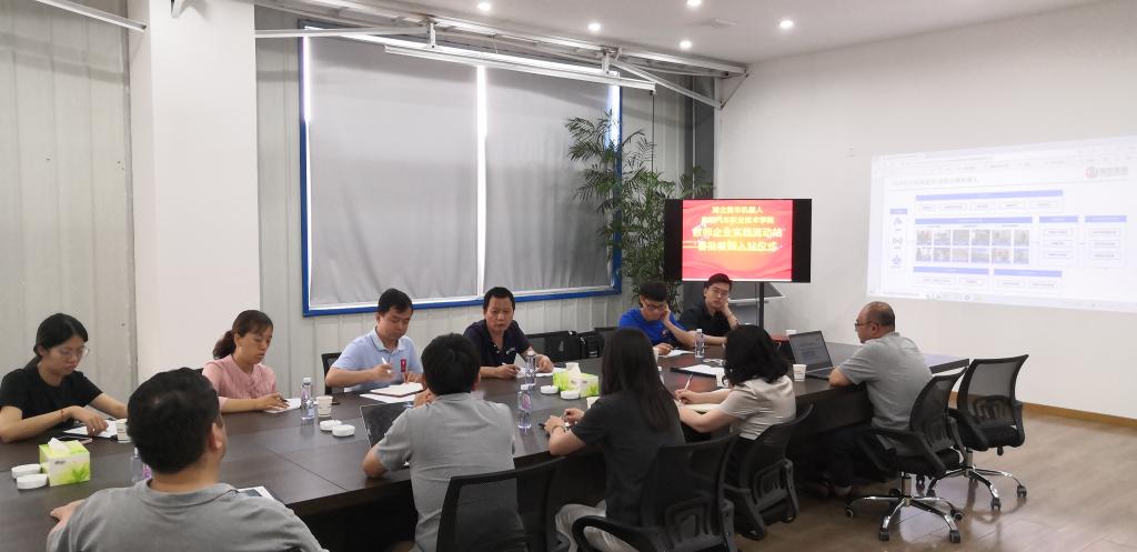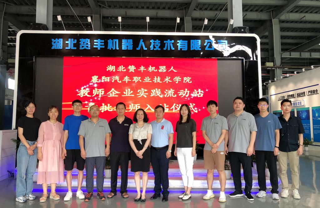 2022年7月1日智能制造学院副院长马春亮、工业机器人教研室主任孙振勇及教研室教师组成的团队到湖北贽丰机器人技术有限公司参加教师企业实践流动站首批教师入站仪式。