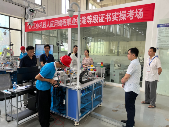考试过程中,襄阳汽车职业技术学院副校长包科杰、教务处处长刘旭光,智能制造学院书记王俊雄、副院长马春亮一行对考核现场进行工作指导。最后,15位考生沉稳答题,认真操作,均在规定的时间内完成了相关考核内容。