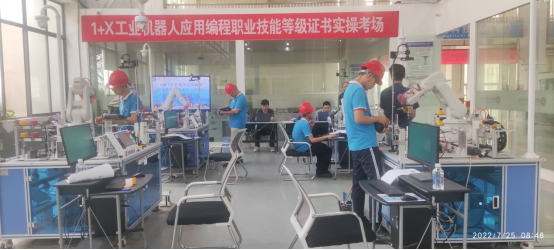 为深入贯彻《国家职业教育改革实施方案》,对标我校双高建设目标,形成可复制和推广的复合型技术技能人才培养模式,推动1+X证书试点工作落地, 7月25日,智能制造学院开展1+X工业机器人应用编程职业技能等级证书(ABB中级)考证工作。