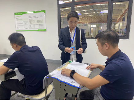 2023年10月26日,由智能制造学院孙莉院长带队,作为电池制造专业专家,应邀对湖北德普电气股份有限公司17名电池测试工职业技能认定评价,并且给予现场指导。
