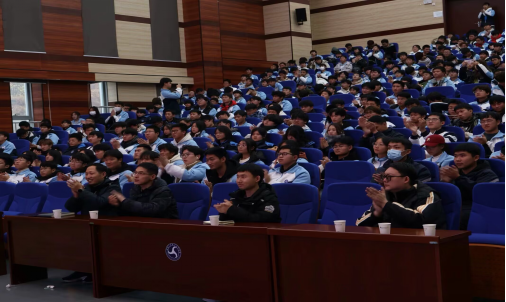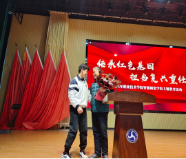 退伍老干部李景禹以“燃爱我之心,立报国之志”为主题结合自身经历,以军人的身份和视角,用深入浅出的语言向师生讲述英雄人物王甫田的故事,重温峥嵘岁月的激情与豪迈。他向学生们推荐自己最喜爱的三本毛主席的经典著作《为人民服务》、《愚公移山》、《纪念白求恩》,并指出青年学子应该站在自己的平台上仰望天空,脚踏实地,储备能量追逐梦想,发出自己的光和热,就是最基本的热爱祖国和报答祖国。活动现场掌声不断,学生们如痴如醉,内心受到强烈的震撼,宣讲结束后学生代表为退伍老干部李景禹献上花束,表达对这位老兵的敬意和祝福。