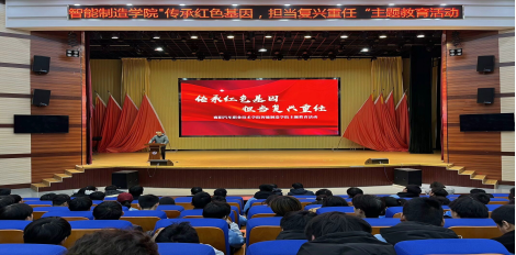 为深入学习宣传贯彻党的二十大精神,激发青年学子的责任感和使命感,让爱国主义精神在青年学子中生根发芽,引领新时代的青年做好红色基因的传承人。12月14日,智能制造学院在科学大会堂开展了“传承红色基因,担当复兴重任”主题教育活动。本次活动特别邀请到了市军休一所军休干部原总参兵种部老河口机械器材仓库主任(正团职)李景禹为学生们做传承红色精神的讲座。智能制造党总支书记张军建,副院长蒋帆以及学管老师代表出席活动,活动由副院长蒋帆主持。