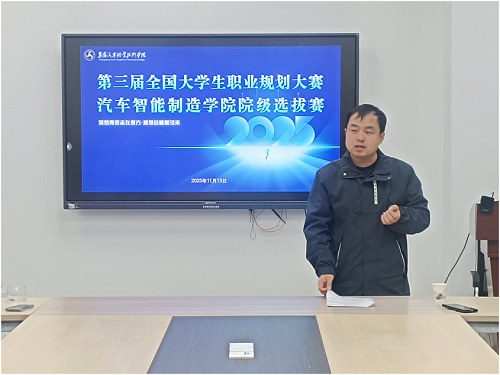 为引导学生树立正确的成才观、就业观,科学规划职业生涯,2025年11月13日,汽车智能制造学院成功举办第三届大学生职业规划大赛院级选拔赛。本次大赛首次采用“线上+线下”联动模式,不仅吸引了全院53名大一、大二学子现场竞技,更通过云端连线,特邀8名谷城产业学院的优秀学子跨越地域限制,与本部选手同台路演,成为本届赛事的一大亮点。