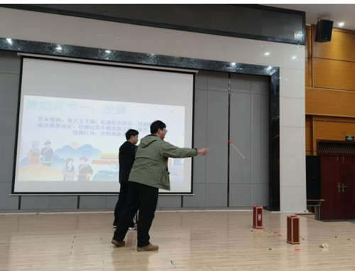 为了增强活动的趣味性与参与感,现场特别设置了“投壶”、“民族蹲”等互动游戏环节。同学们踊跃参与,在轻松愉快的游戏中不仅体验了传统文化的乐趣,更在实践中增进了对不同文化的了解与尊重,现场欢声笑语不断,气氛融洽热烈。