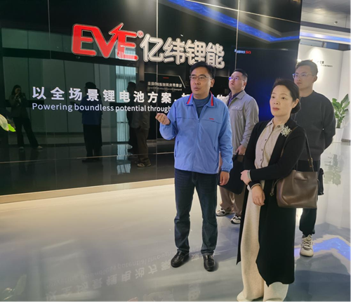 随后,孙莉一行前往亿纬锂能股份有限公司进行走访交流。公司人事部张经理详细介绍了企业发展历程、核心产品体系及全球产业布局情况,并陪同孙院长一行参观了产品展厅与六区生产车间。期间,双方围绕校企合作模式、课程前置、教材开发等事宜展开深入沟通与交流。